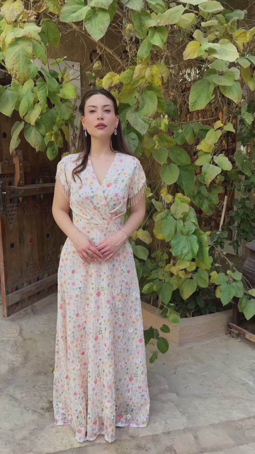 فستان جايا تصميم يعكس الأنوثة والرقي، مصنوع بلون أبيض ملكي بطباعة ورود يضفي لمسة من الصفاء والنقاء، مع تفاصيل أنيقة تمنحكِ إطلالة ساحرة تناسب أرقى المناسبات.